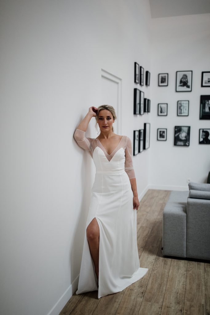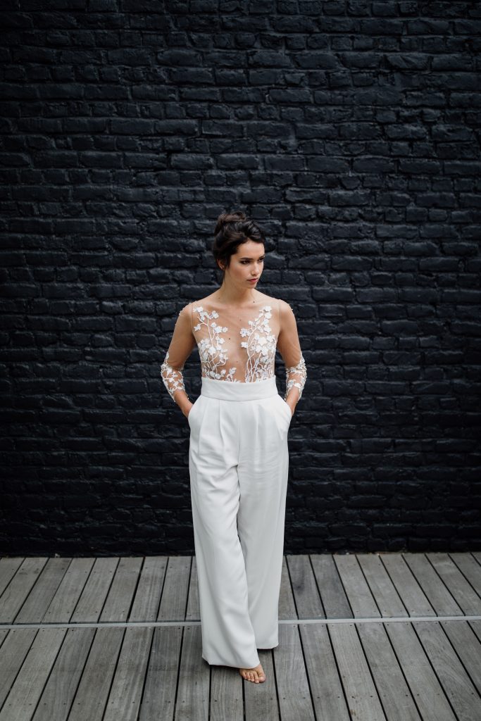 La collection BOTANIQUE se décline en plusieurs modèles, chacun ayant sa propre personnalité. La silhouette se dessine élancée, avec une taille marquée, conférant une allure à la fois raffinée et audacieuse. Les décolletés vertigineux ajoutent une touche d’impertinence, tout en restant subtils grâce au jeu de transparence des dentelles. Ce contraste entre audace et délicatesse permet à chaque mariée de s’exprimer pleinement à travers sa tenue.