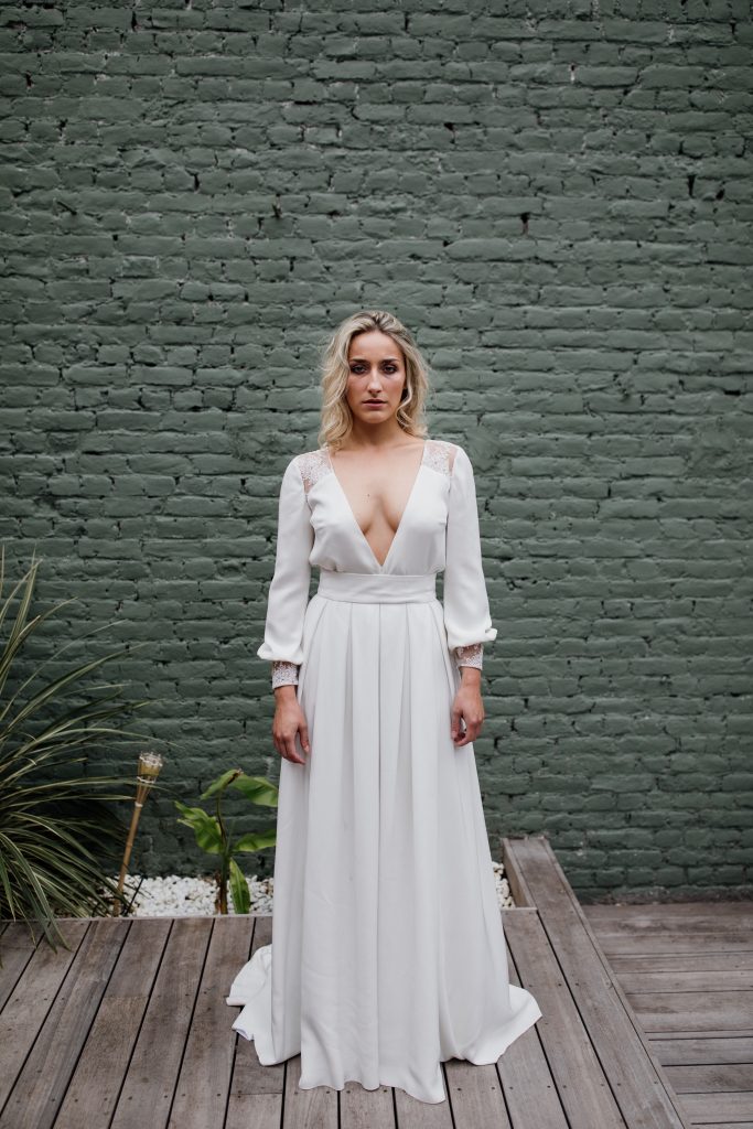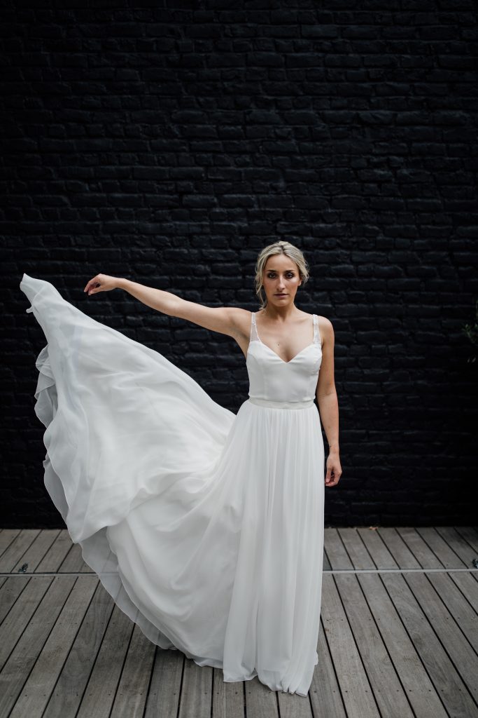 Cette authenticité se révèle à travers la finesse des matières, les coupes épurées et les détails marqués. Chaque robe est soigneusement conçue pour mettre en avant la beauté naturelle de la femme moderne. L’essence végétale des tulles brodés, appliqués sur l’air intensément « moody » d’Emilie Simon — Alicia, sublime ces modèles uniques et donne une dimension poétique à la collection.